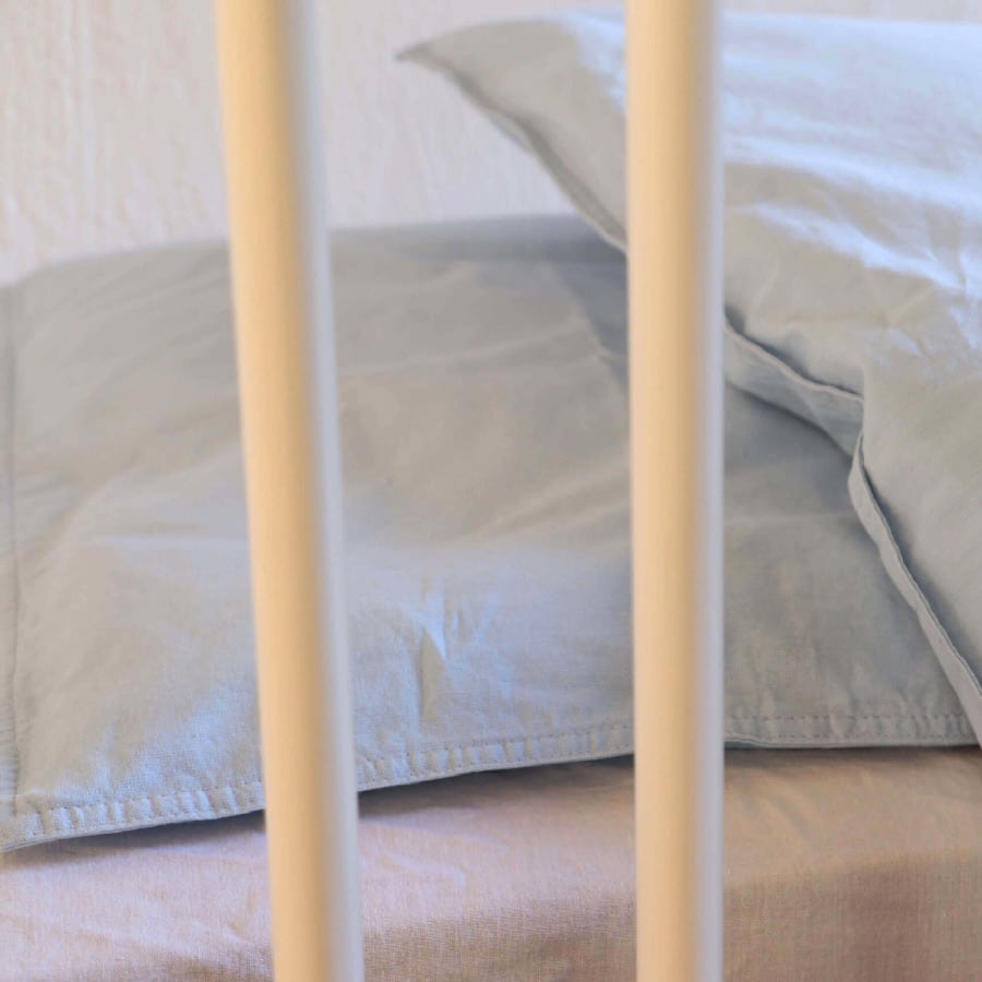 Vores børn betyder alt for os og vi ønsker blot, at de skal have det godt. Med dette 100% Naturlige og økologiske sengesæt i Lyseblå fra Omhu giver du dit barn en tryg og hyggelig søvn med god samvittighed. Sengesættet lavest i 100 % økologisk bomulds Percale. Percale er en klassisk tæt lærredsvævning som sikre at det er sundt og allergivenligt. Sengesættet har dobbelte stikninger langs betrækkenes kanter og er ensfarvet i sit design for at givet en let og elegant opredning til både piger og drenge.