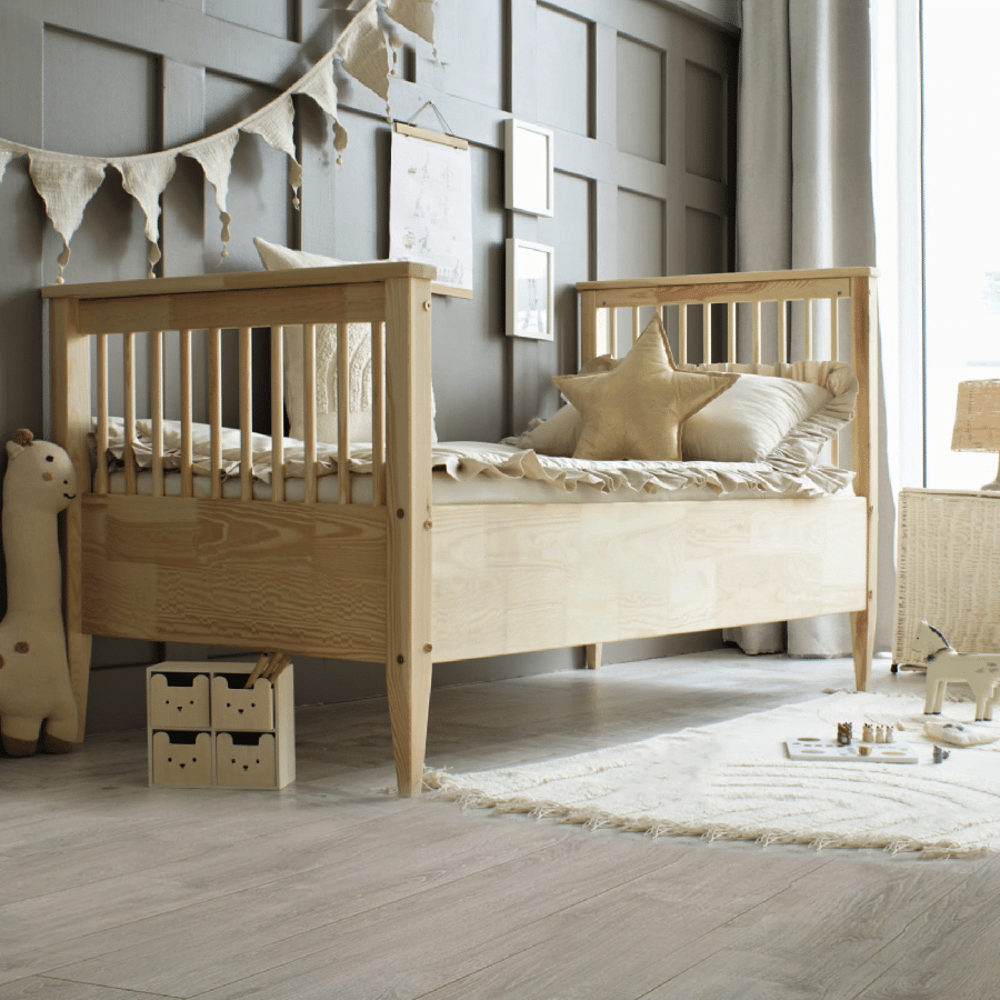 Alle børnesenge fra Raw Kids er lavet af 1 klasses massiv fyrretræ i allerhøjeste kvalitet.