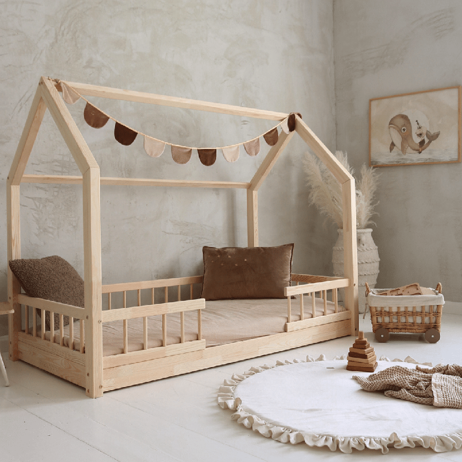 Alma Snedker Husseng Håndlavet i 100% Massiv Fyrretræ med Simpel Sengehest fra Raw Kids | Flere Størrelser
