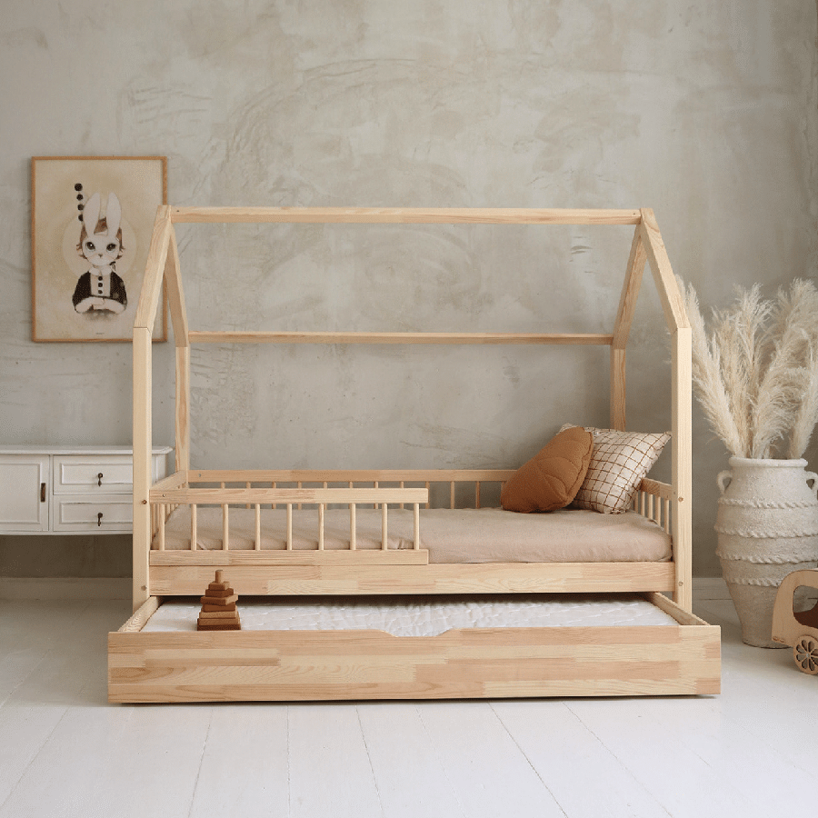 Alma Snedker Husseng Håndlavet i 100% Massiv Fyrretræ med Skuffe og Simpel Sengehest fra Raw Kids | Flere Størrelser