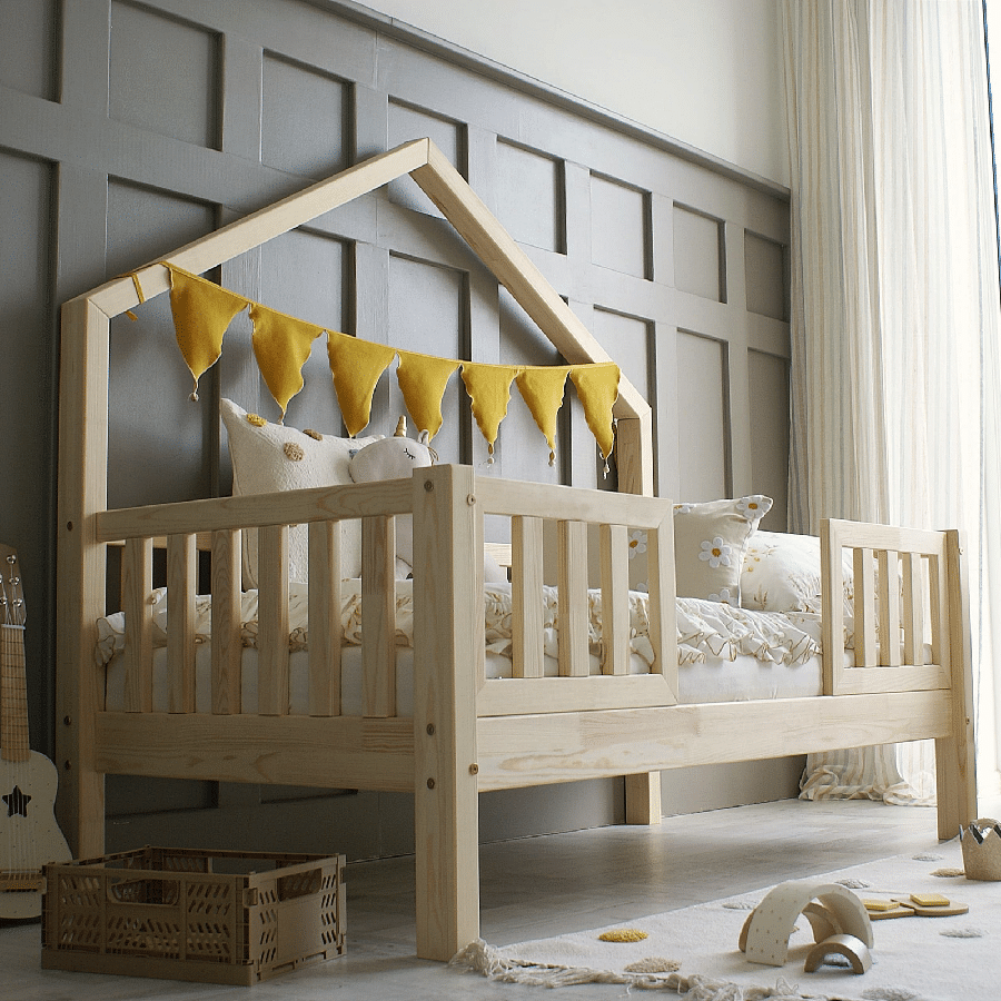 Alma Duo Snedker Husseng Håndlavet i 100% Massiv Fyrretræ med Simpel Sengehest fra Raw Kids | Flere Størrelser