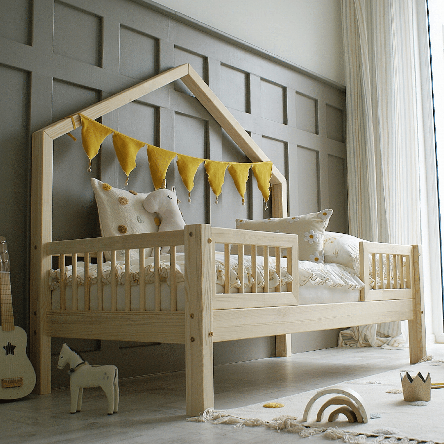 Ella Snedker Husseng Håndlavet i 100% Massiv Fyrretræ med Sengehest fra Raw Kids | Flere Størrelser