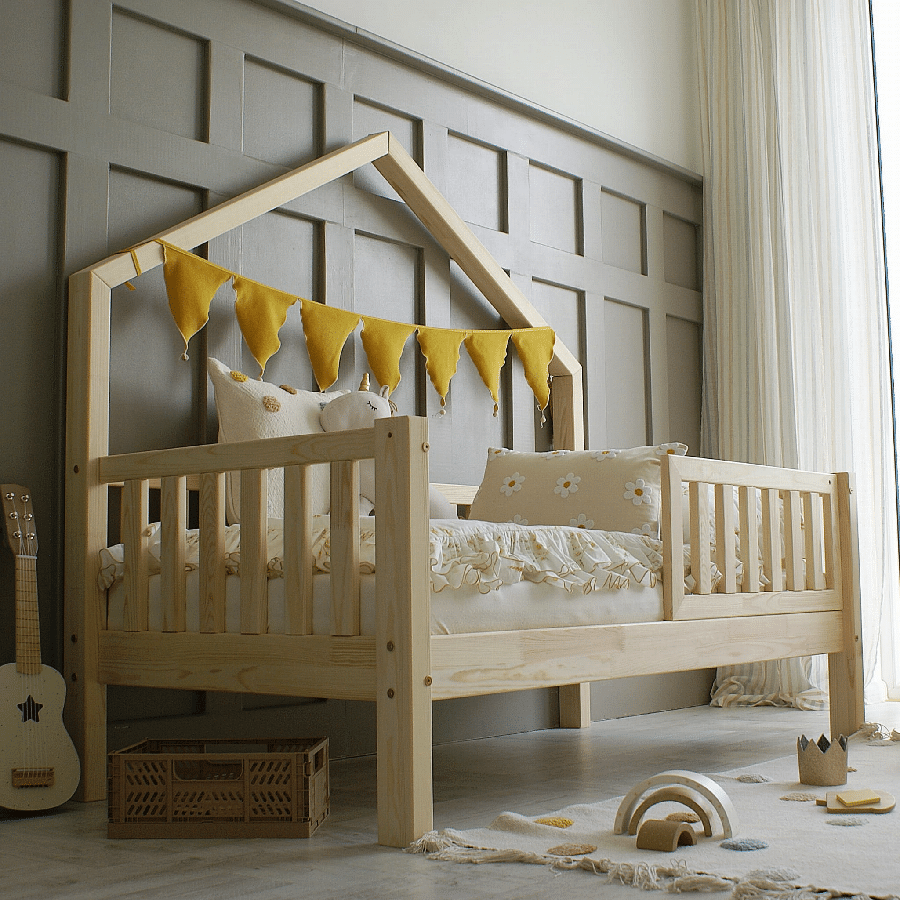 Ella Snedker Husseng Håndlavet i 100% Massiv Fyrretræ med Sengehest fra Raw Kids | Flere Størrelser