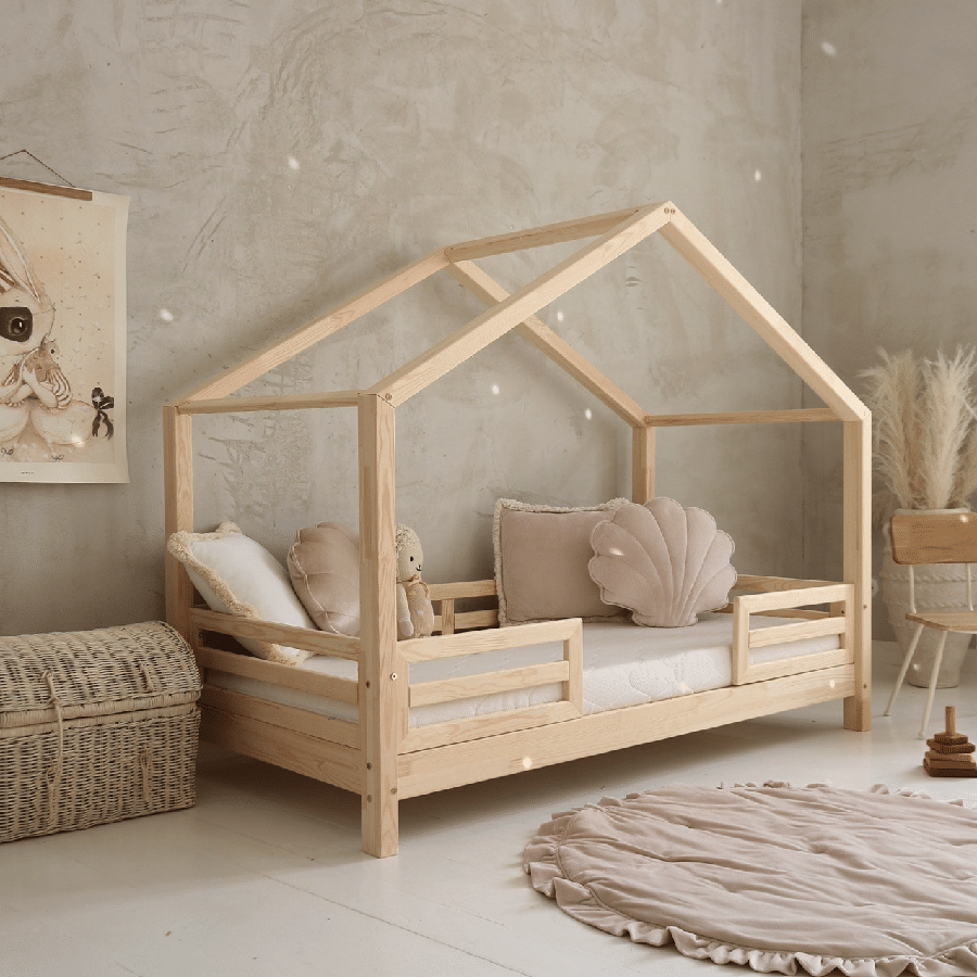 Ella Snedker Husseng Håndlavet i 100% Massiv Fyrretræ med Sengehest fra Raw Kids | Flere Størrelser