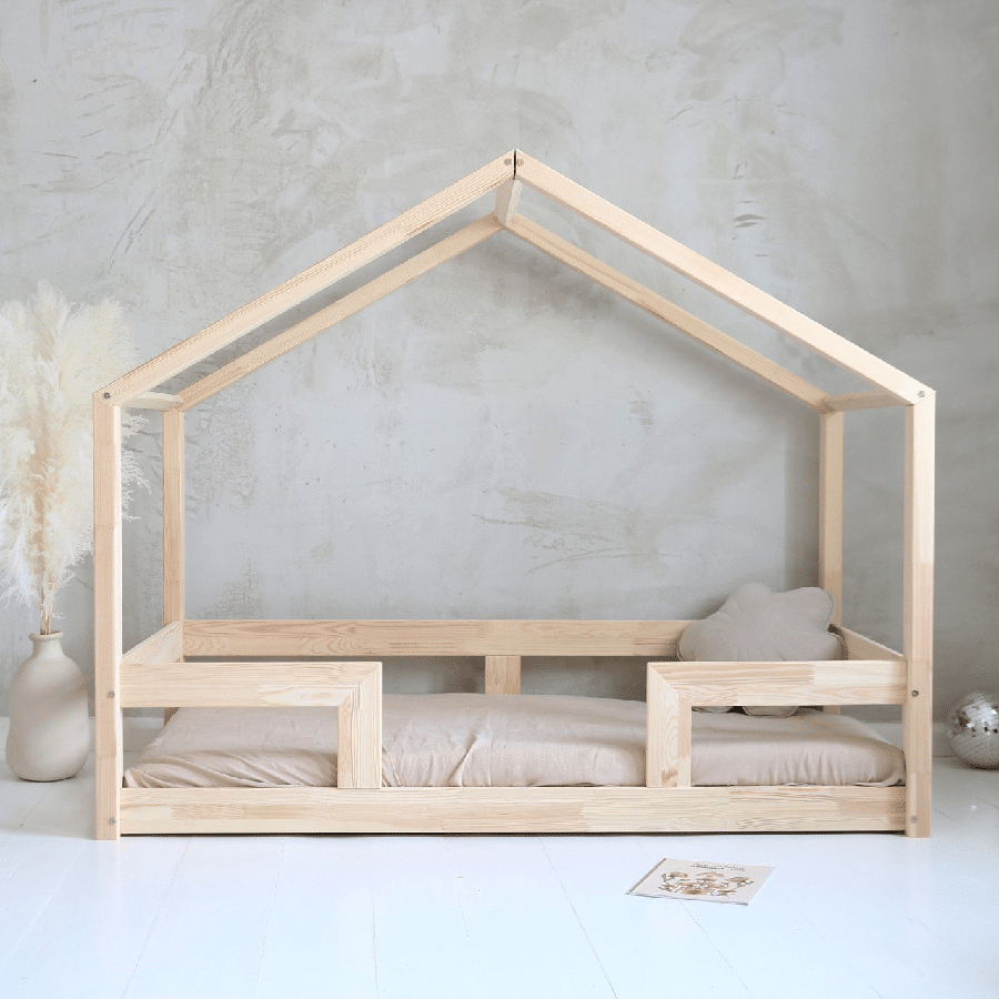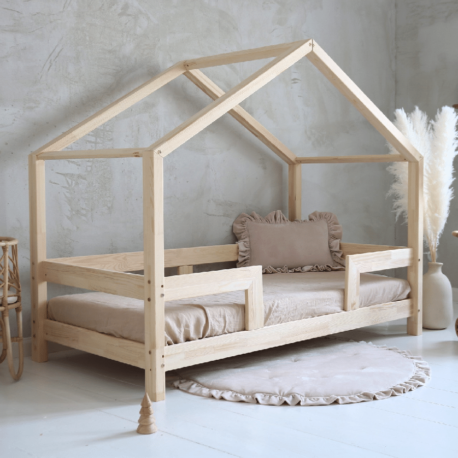 Alma Snedker Husseng Håndlavet i 100% Massiv Fyrretræ med Simpel Sengehest fra Raw Kids | Flere Størrelser