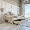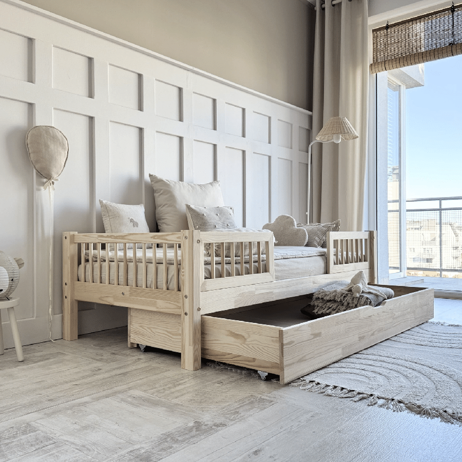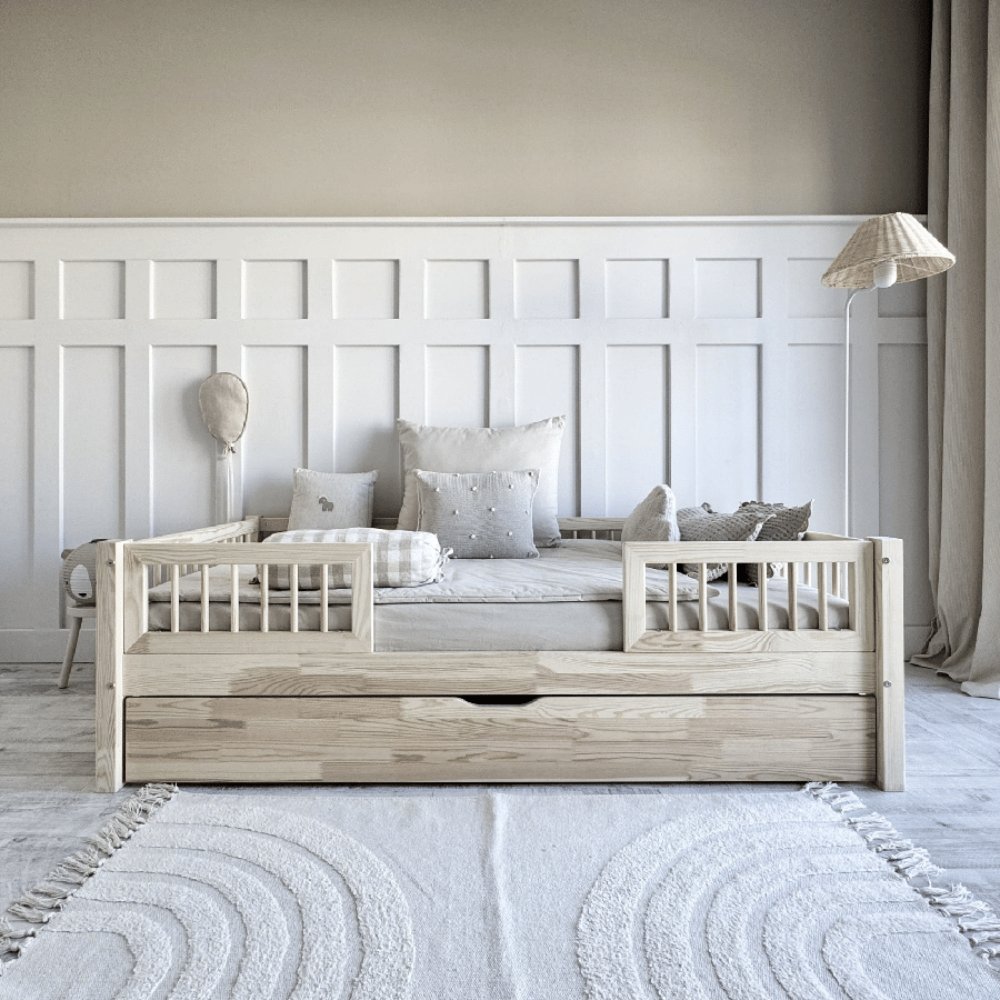 Josefina Duo Snedker Sengeramme Håndlavet i 100% Massiv Fyrretræ med Skuffe & Rund Sengehest fra Raw Kids | Flere Størrelser
