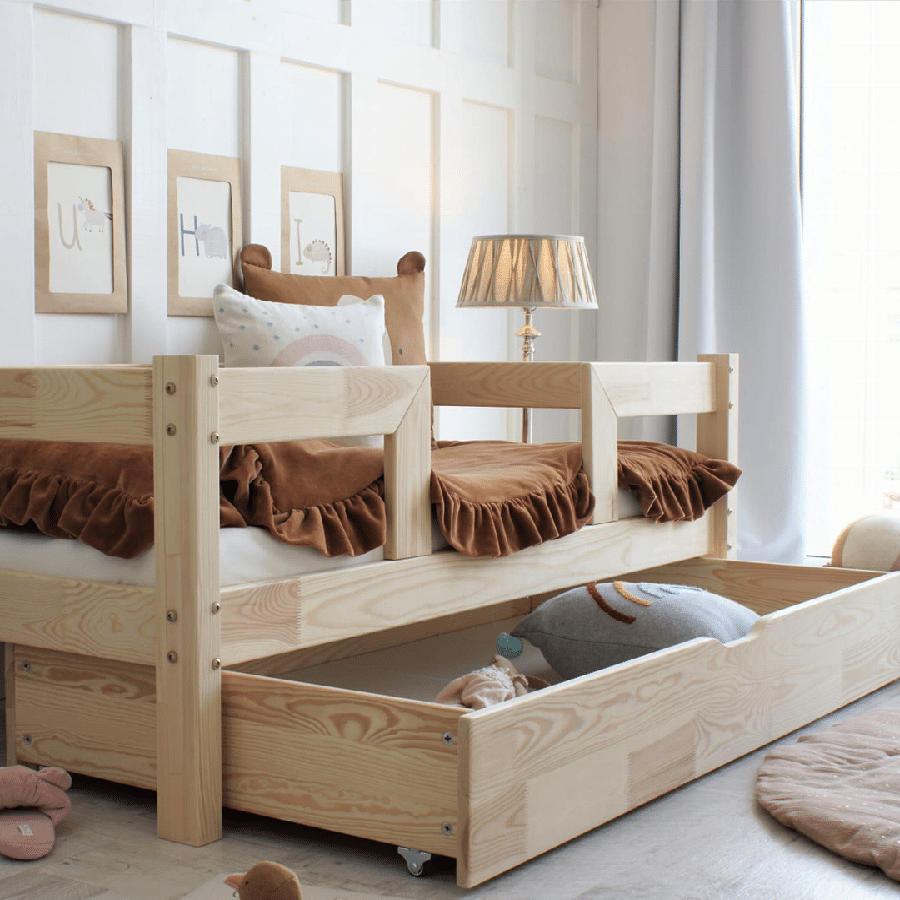 Josefina Duo Snedker Sengeramme Håndlavet i 100% Massiv Fyrretræ med Skuffe & Simpel Sengehest fra Raw Kids | Flere Størrelser
