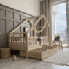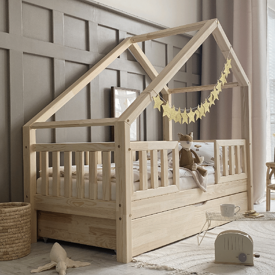 Alma Duo Snedker Husseng Håndlavet i 100% Massiv Fyrretræ med Skuffe og Rund Sengehest fra Raw Kids | Flere Størrelser