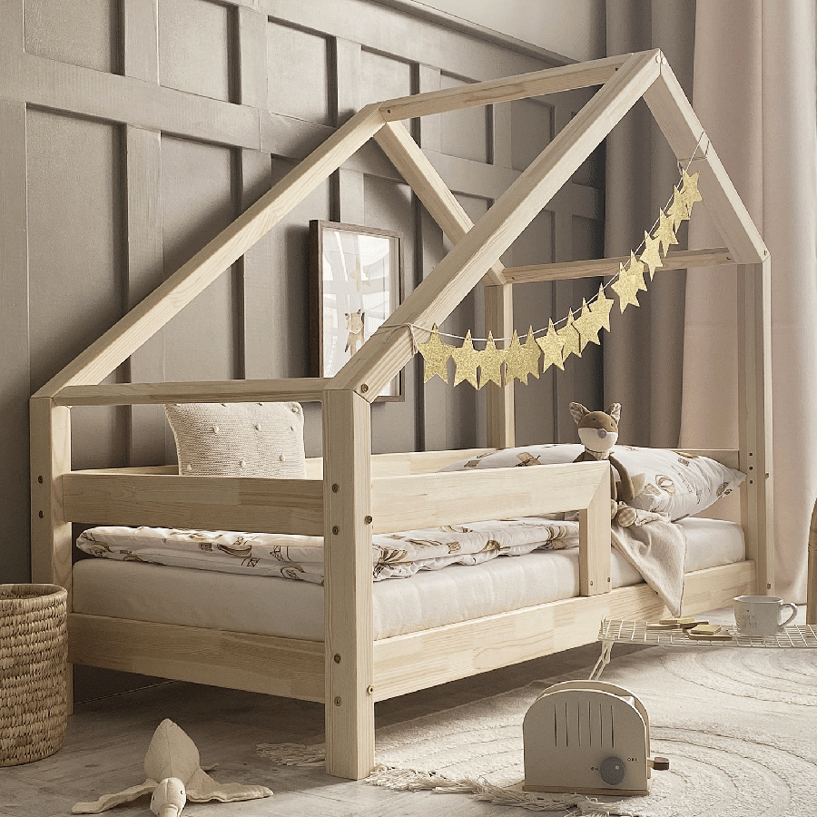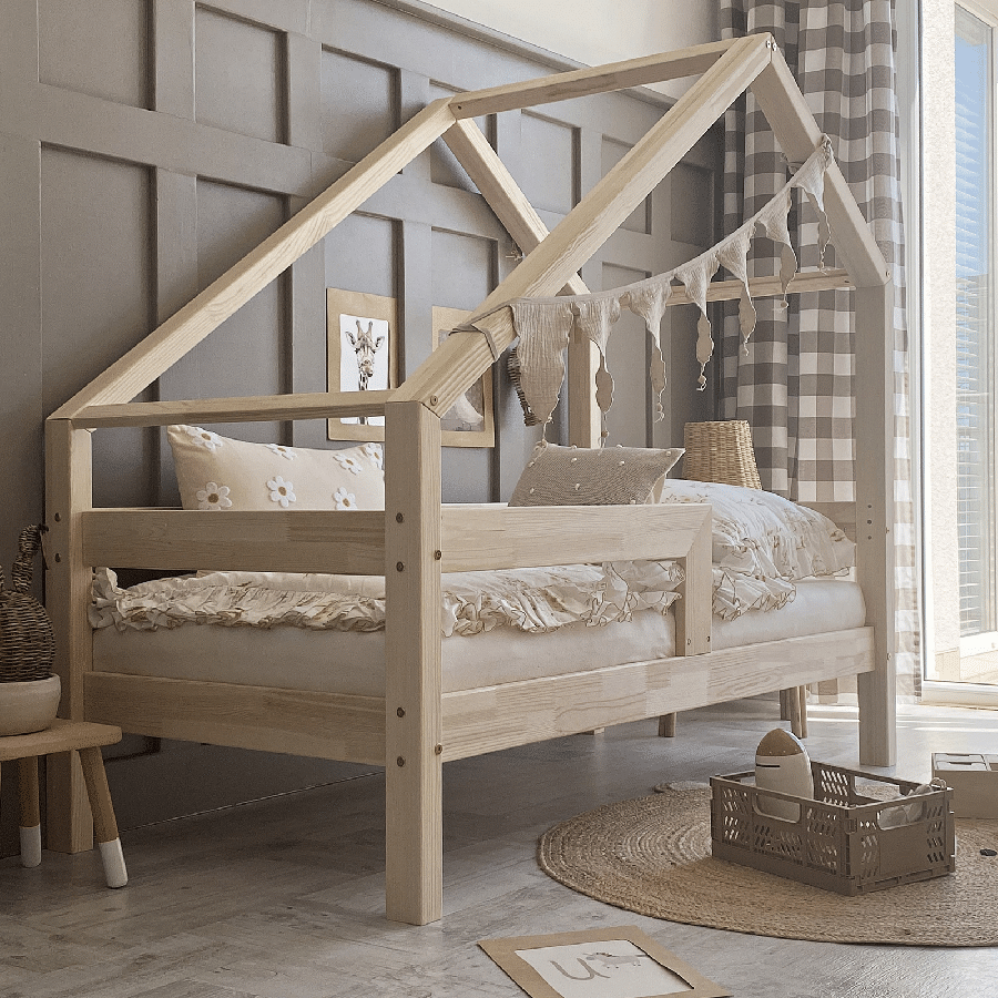 Lærke Snedker Husseng Håndlavet i 100% Massiv Fyrretræ med Simpel Sengehest fra Raw Kids | Flere Størrelser