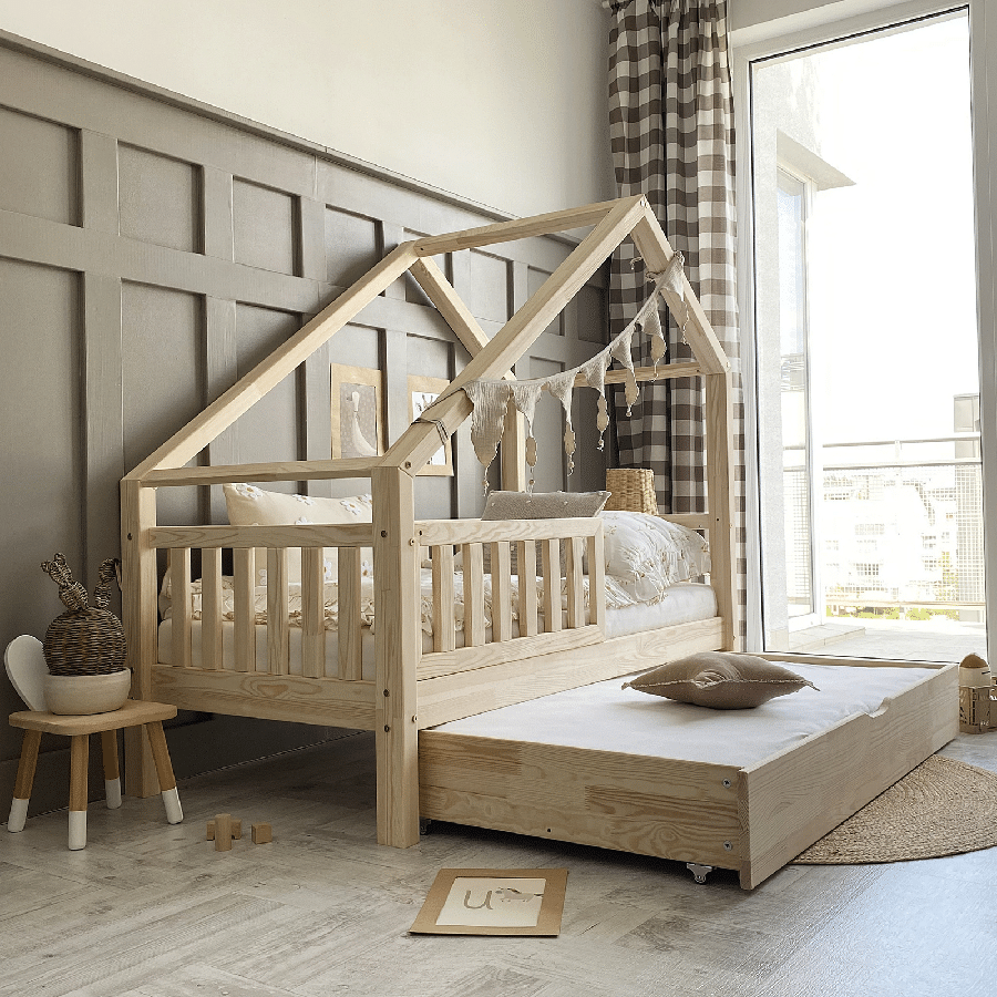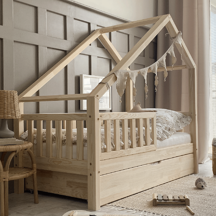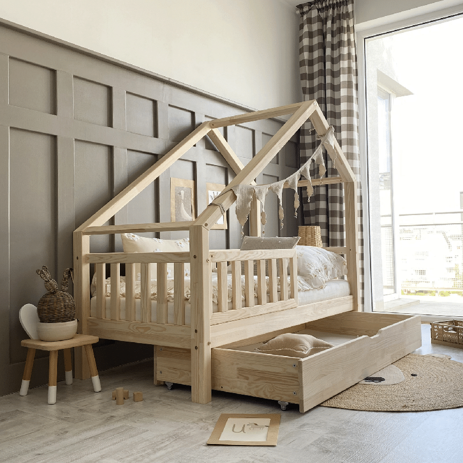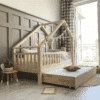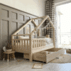 Lærke Snedker Husseng Håndlavet i 100% Massiv Fyrretræ med Skuffe og Klassisk Sengehest fra Raw Kids | Flere Størrelser