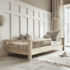 Laura Snedker sengeramme med rund sengehest fra Raw Kids er en håndlavet børneseng i 100 % massivt fyrretræ – skabt til dig, der værdsætter naturlige materialer og skandinavisk enkelthed. Den faste sengehest med runde tremmer sikrer barnet en tryg soveplads og kan placeres i både højre og venstre side.