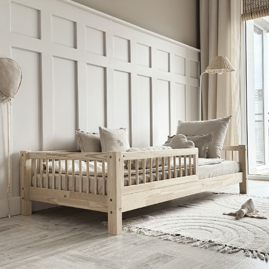 Clara Snedker Sengeramme Håndlavet i 100% Massiv Fyrretræ med Klassisk Sengehest fra Raw Kids | Flere Størrelser