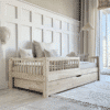 Laura Snedker Sengeramme Håndlavet i 100% Massiv Fyrretræ med Skuffe & Rund Sengehest fra Raw Kids | Flere Størrelser