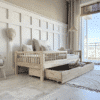 Freja Snedker Sengeramme Håndlavet i 100% Massiv Fyrretræ med Skuffe & Rund Sengehest fra Raw Kids | Flere Størrelser