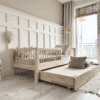 Sofia Snedker Sengeramme Håndlavet i 100% Massiv Fyrretræ med Skuffe & Rund Sengehest fra Raw Kids | Flere Størrelser