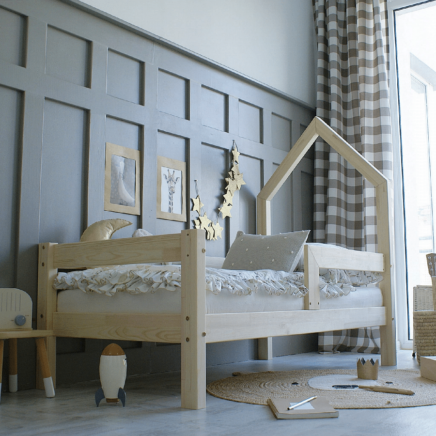 Victoria Snedker Husseng Håndlavet i 100% Massiv Fyrretræ med Simpel Sengehest fra Raw Kids | Flere Størrelser