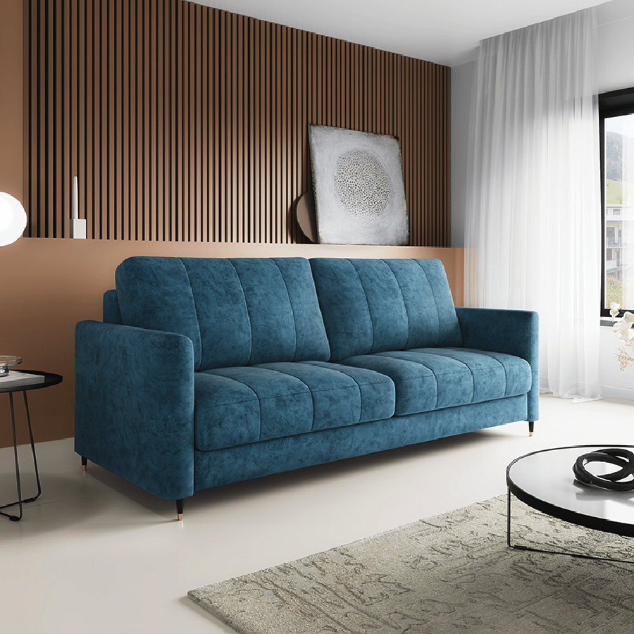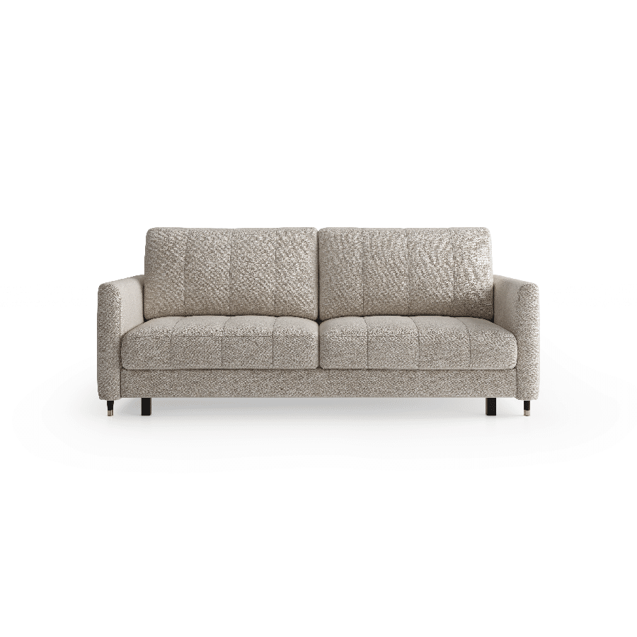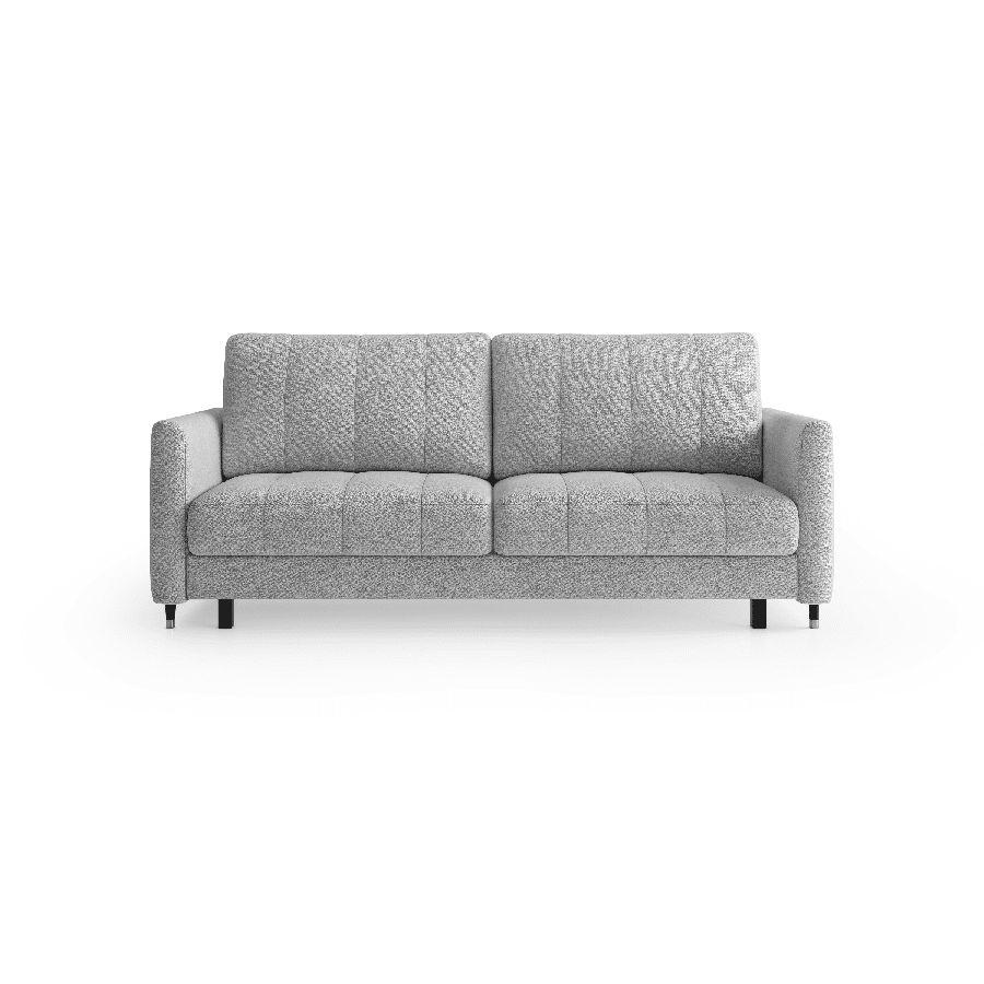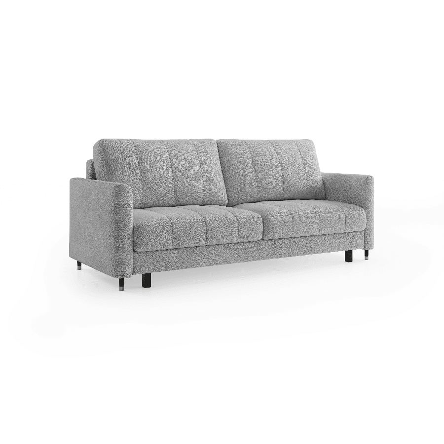 Sædet er desuden fyldt med højelastisk skum, som giver optimal støtte og reducerer risikoen for deformation. Hynderne har en kerne af polyurethan-silikone og er inddelt i rum, så de bevarer form og komfort over tid. Sofaen rummer et stort og praktisk opbevaringsrum, perfekt til dyner, puder eller andet tilbehør. Den automatiske sovefunktion aktiveres nemt og uden brug af kræfter – mekanismen beskytter samtidig gulvet mod ridser.