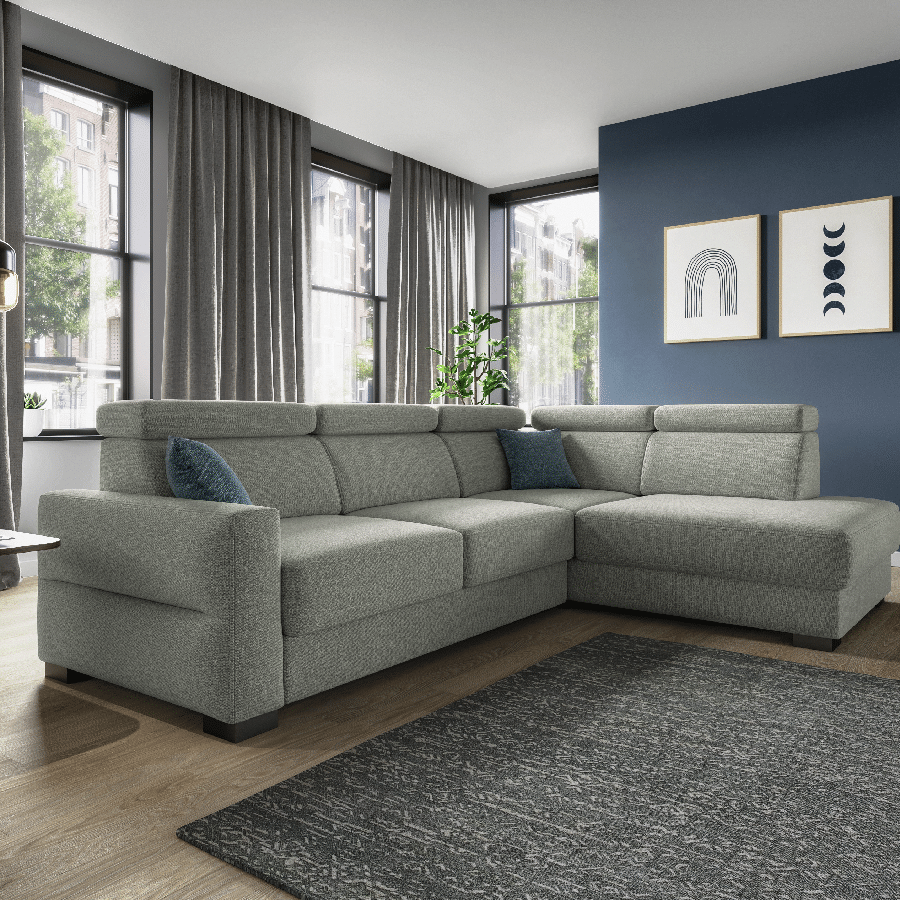 Den justerbare nakkestøtte gør det muligt at tilpasse siddepositionen individuelt, mens et rummeligt opbevaringsrum under sædet giver plads til dyne, pude og sengetøj. Sofaen er udstyret med sovefunktion via den intuitive “puma”-mekanisme: du løfter blot sædet, skubber frem – og en ekstra del glider automatisk ud og danner en jævn og komfortabel soveflade.