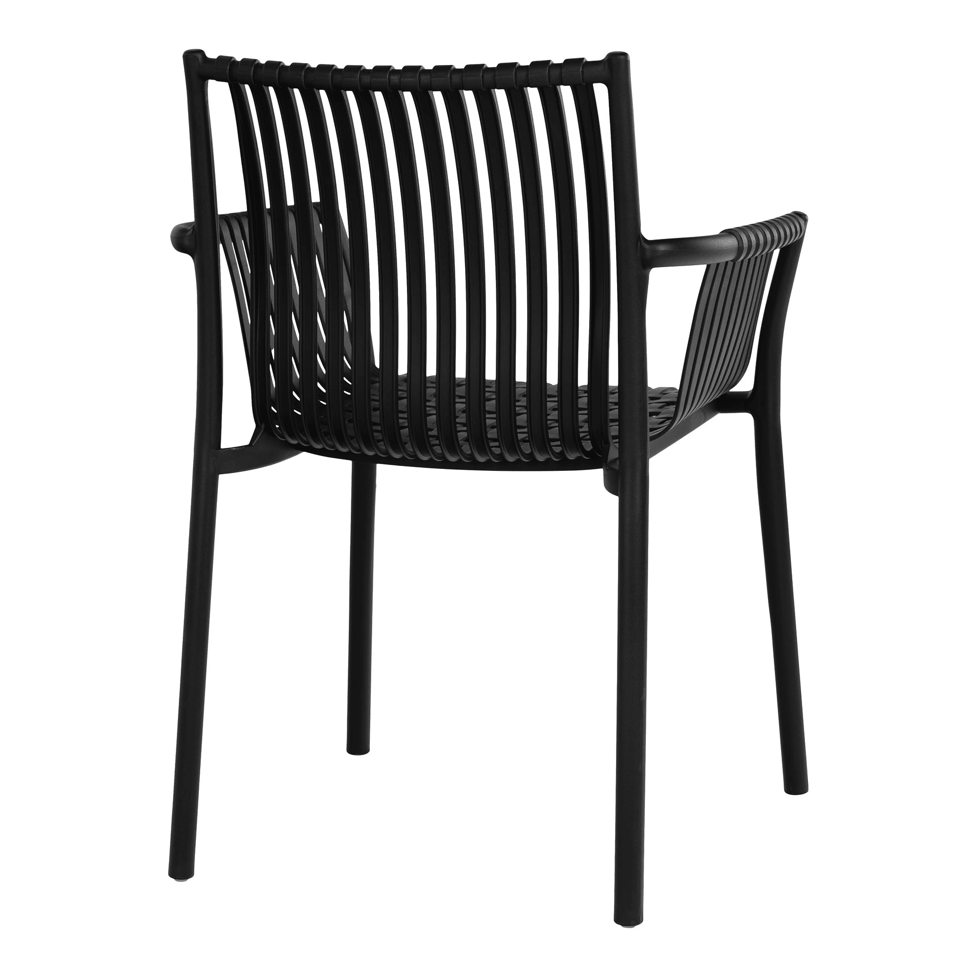 En af fordelene ved PP er dens UV-resistens, hvilket betyder, at stolen bevarer sin sorte farve, selv når den udsættes for sollys og vejrforhold over længere tid. Derudover er stolen stabelbar, hvilket gør den nem at opbevare og transportere, når den ikke er i brug.