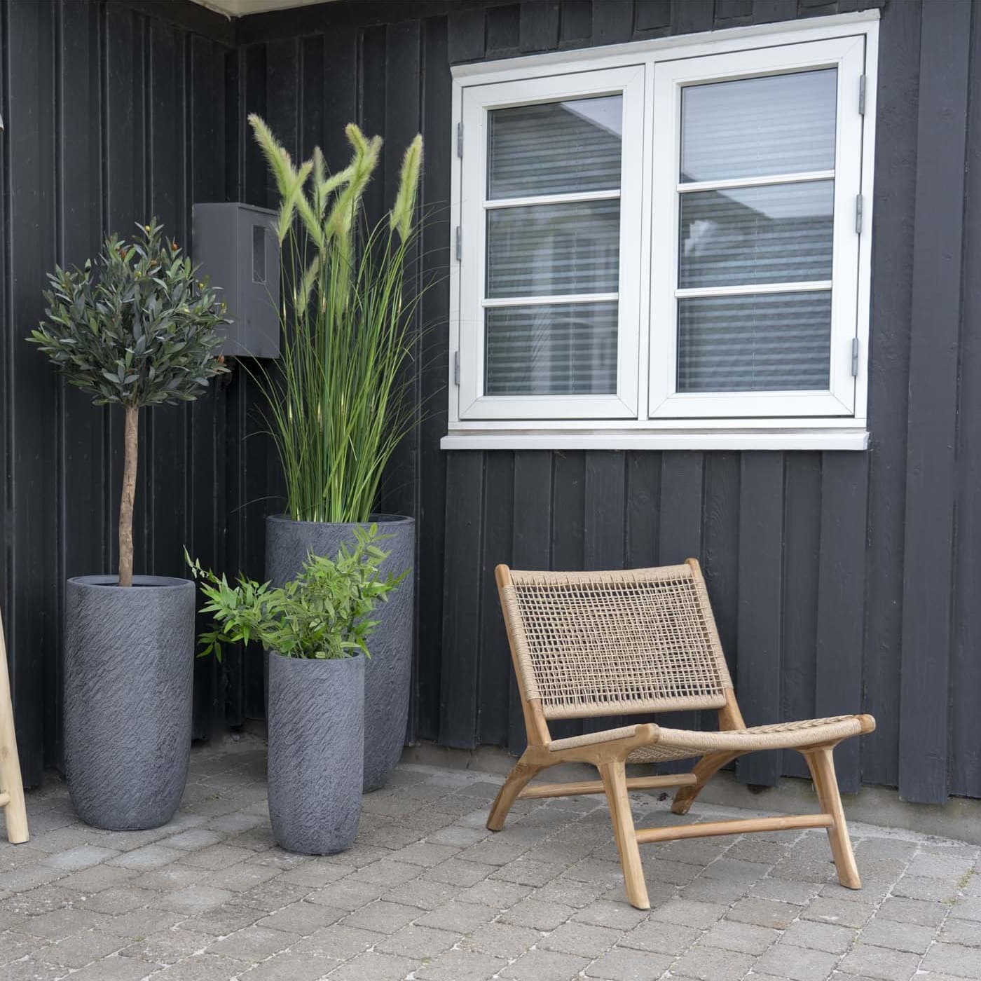 De smukke teaktræben giver en elegant kontrast til det naturlige polyrattan og tilføjer en tidløs charme til stolen. Teaktræet er kendt for sin holdbarhed og vil sikre, at du kan nyde denne stol i mange år fremover.