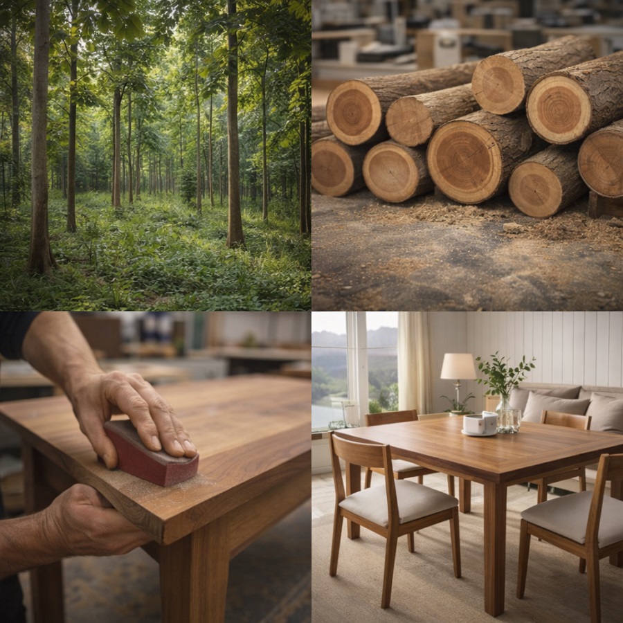 Teaktræ er træ fra træarten Tectona grandis, der primært findes i Sydøstasien, især i lande som Indonesien, Myanmar, Thailand og Indien. Det er kendt for sin holdbarhed, modstandsdygtighed over for råd og skadedyr samt dets naturlige skønhed og varme farver. Teaktræet har en tæt kornstruktur og er rig på naturlige olier, hvilket gør det ideelt til udendørs møbler og konstruktioner, da det kan modstå fugt, skiftende vejrforhold og insekter.